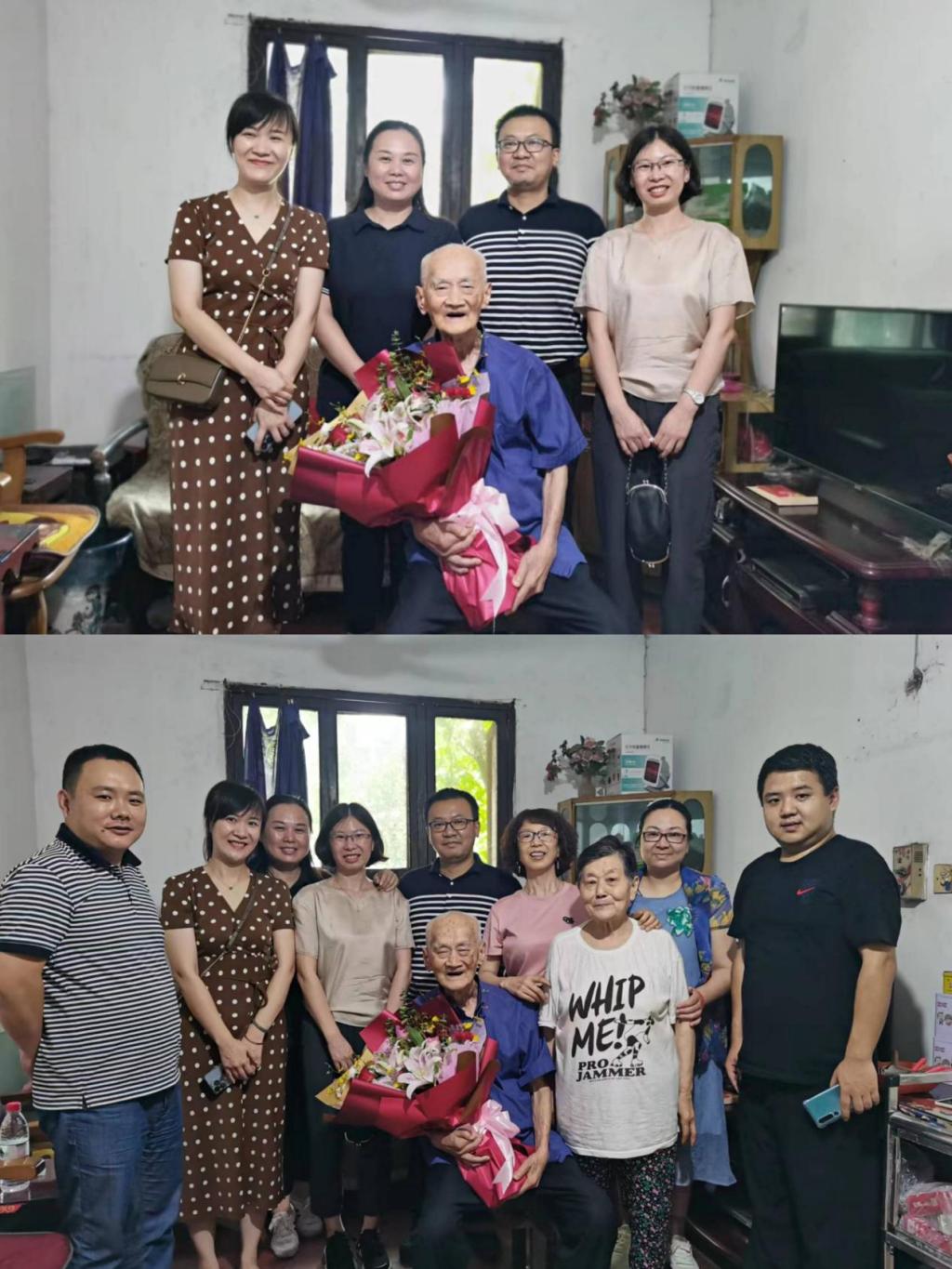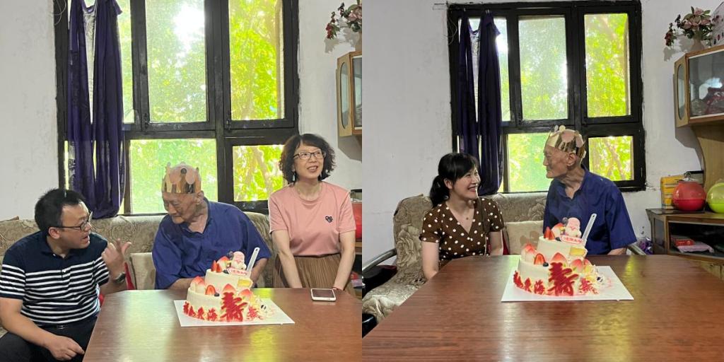 罗庆书记一行走进赵老师家中,与老人亲切交谈,了解老人身体状况和日常起居生活,与老人一起唱生日歌、切蛋糕,表达了学院党政的关心和慰问,送去了对老人百岁生日的真挚祝福!