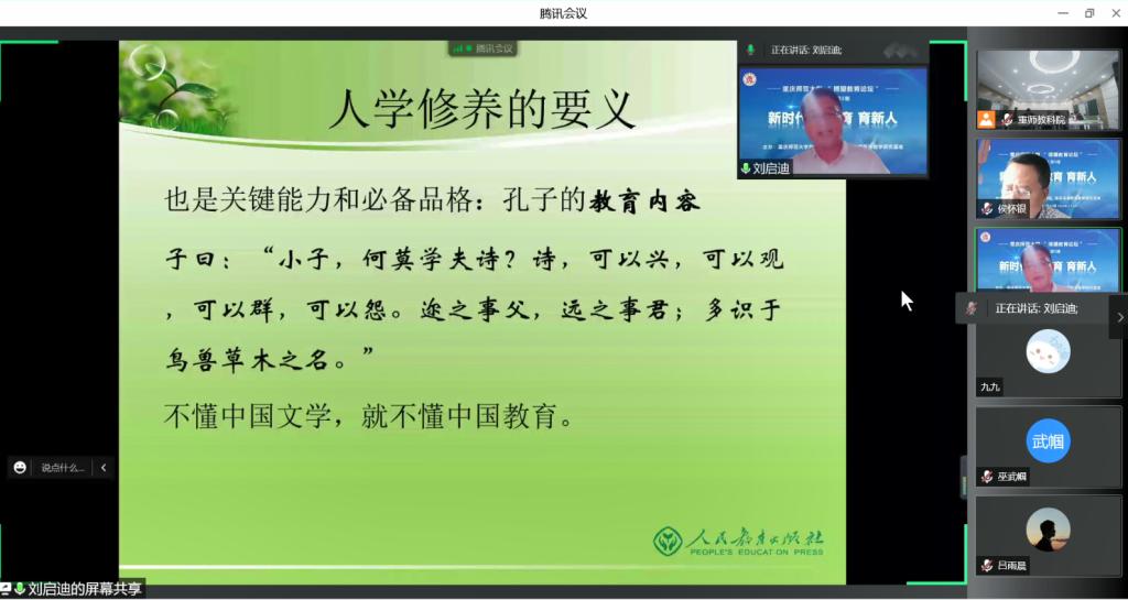 院长朱桂琴教授、副院长魏勇刚教授、教育学系主任伍雪辉副教授以及线上线下两百余名教师和研究生共同聆听。