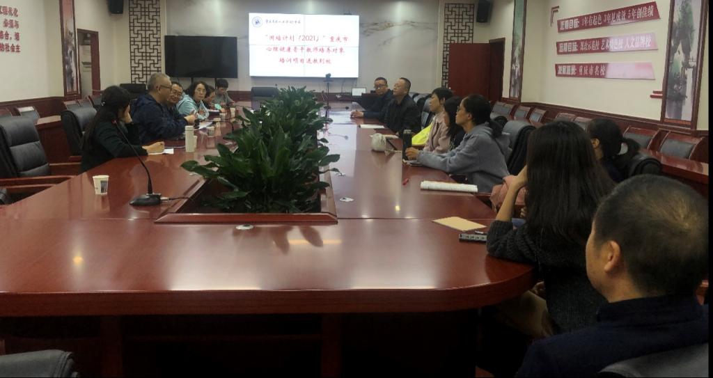 此行共三个方面的内容:1.“国培计划(2021)”重庆市心理健康骨干教师培养对象培训项目送教到校;2.“国培计划(2022)” 重庆市中小学心理健康区县级骨干教师培训项目前期调研;3.“国培计划(2022)”重庆市初中骨干校(园)长提升培训项目前期调研。