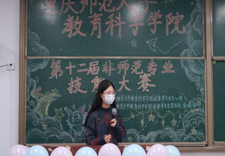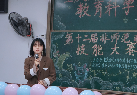 第十二届非师范生专业技能大赛在弘德楼15102顺利举行。学院党委副书记李林霖、副院长杨思帆到场指导,周树银老师、洪显利老师、张倩老师、候湘铃老师、孙忠凯老师担任本次比赛的评委。本次活动由罗冰雯同学主持。
