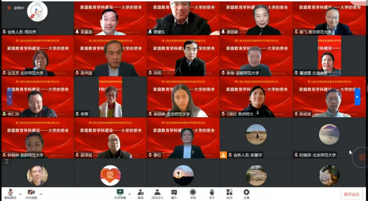为深入学习贯彻党的二十大精神,落实《中华人民共和国家庭教育促进法》,12月17日至18日由中国高等教育学会家庭教育专业委员会(筹)主办,北京师范大学与首都师范大学共同举办线上第三届全国高校家庭教育学科建设研讨会。会议设三个分论坛,以“家庭教育知识和人才培养体系建设”、“家校社协同育人机制建设”、“青年学者家庭教育论坛”为主题,来自北京大学、清华大学 、北京师范大学、首都师范大学、南京师范大学、南京大学等高校、科研院所的知名学者以报告形式开展交流研讨,约2.2万名师生以线上形式参会互动。耽美漫画