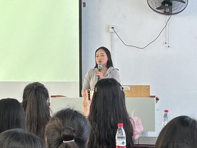 谢国爽向同学们介绍了她的就业情况、教学经验,让同学们对教师行业了解更加清晰,对于自己人生的选择更有把握。