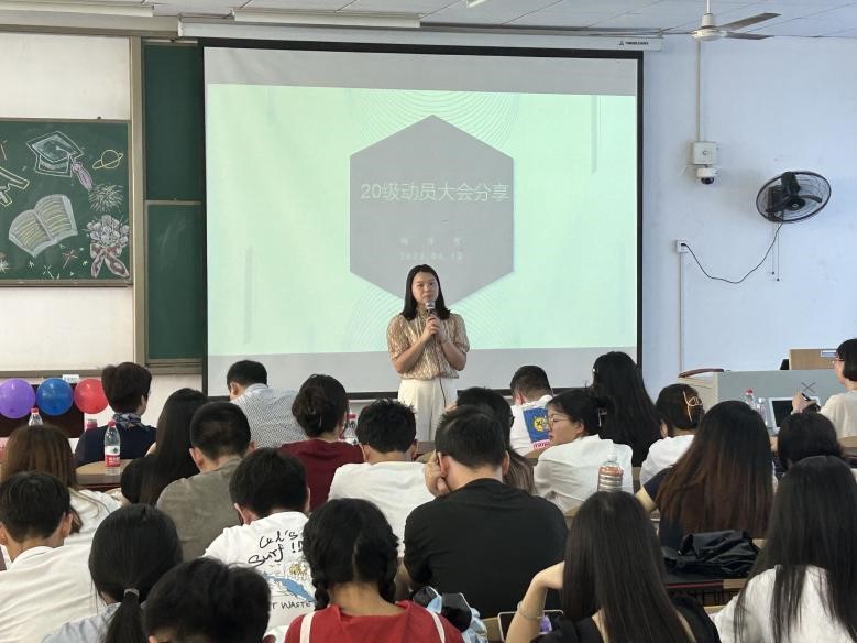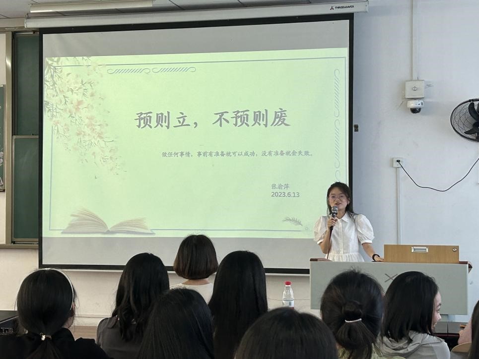 会上,梅香雪、熊心怡、姜淑暖三位同学向大家分享了她们的考研经历与学习计划。她们的坚毅,给同学们巨大的勇气与信心。