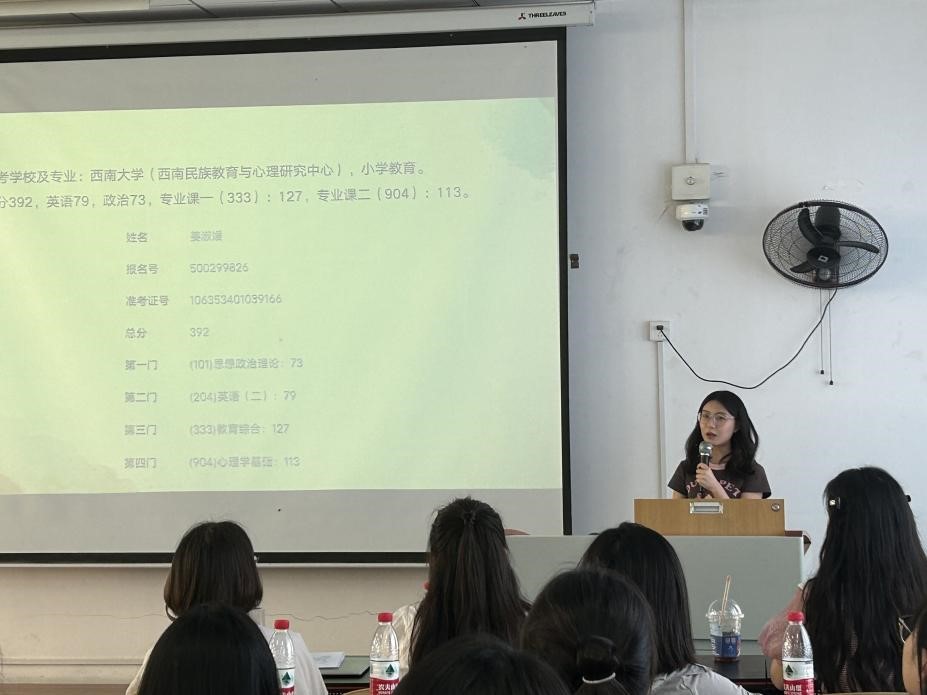 姜淑暖被西南大学小学教育专业录取为研究生。她分享的重点是如何选到自己心仪的考研院校,引导同学们用问题表格的方式来摸清楚意向学校的一些倾向。