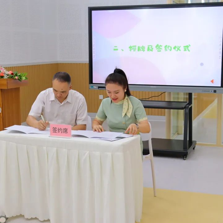 双方签订了合作协议。园方表示将切实履行实践和就业基地的职责,承担好实践教学任务,做好毕业生就业工作。杨思帆副院长表示,石桥铺幼儿园有着齐全完备的设施设备,美丽现代化的园所环境,幼儿园管理团队、师资队伍专业、团结、青春朝气。感谢幼儿园的邀请和信任、对于2023届学前教育毕业生的厚爱和支持,希望以建立实践就业基地为契机,双方通力合作共同探索一种全新优质专业人才培养模式,在课程建设,教研等方面有更多深入合作,建立更成熟、更为密切、更为长久的人才供需合作方式,促进专业人才培养,将理论与实践融合一体,互相成长与发展。