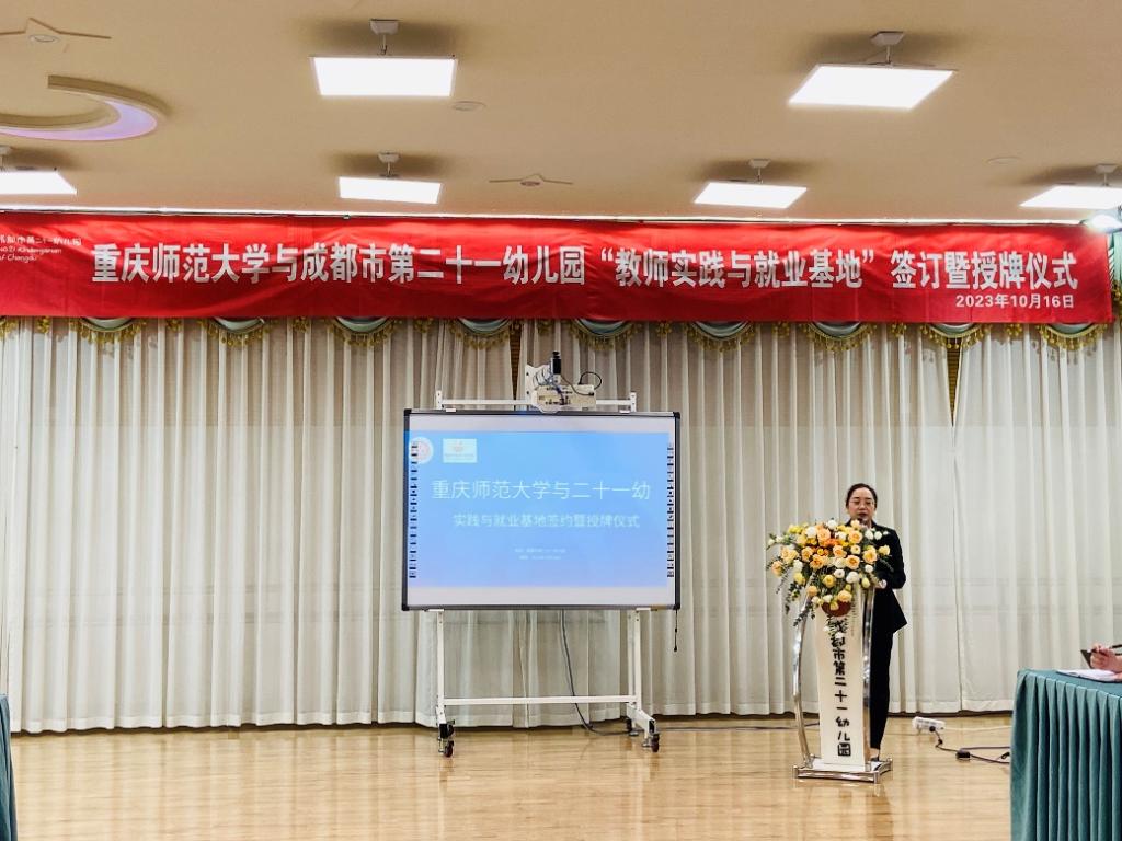 园长杨敏向大家介绍了二十一幼的办园理念、发展历史、特色课程等,同时还介绍了成都市武侯区学前教育发展情况和相关教育政策。