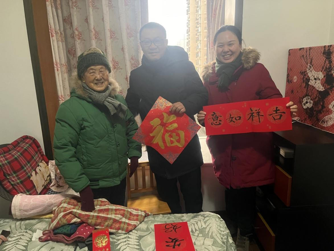 在走访慰问中,院领导与老同志亲切交谈,仔细了解老教师的生活和身体状况,倾听他们的心声,感谢他们为学校的建设和发展所做的贡献;并向老同志们介绍了学院2023年的工作和发展情况,主动征求老同志们对学院发展的意见、建议。同时送上学院老师亲笔书写的春联,每个春联都代表着学院最真挚的祝福。老同志们非常开心,十分感谢学院的关心和记挂,纷纷表达了对学院的感激之情和美好祝福。