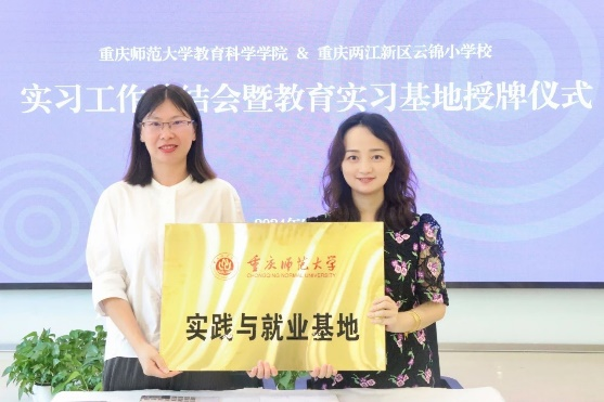 教育学系和重庆两江新区云锦小学校,签订教育实习基地协议,并授牌。