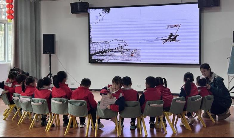 学前教育专业2022级本科生雷清静与黄绍鑫同学分别呈现了——“故事姐姐讲故事”之《不怕冷的大衣》和《猴吃西瓜》。他们丰富的表情、生动的肢体语言深深吸引了幼儿,为孩子们带来了别样的体验。与会者对两位同学的现场表现、专业素养以及对学校人才培养的成效给予了高度评价。