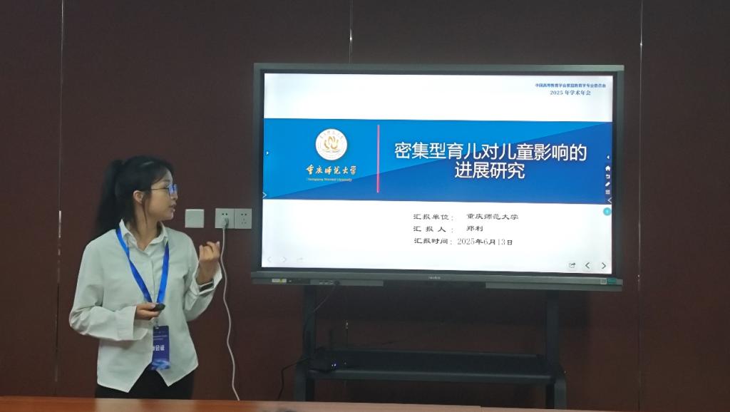赵明月在分论坛五,以《自媒体动画短视频影响下儿童语言习得的家庭支持策略研究》为题进行了汇报,探讨了自媒体动画短视频如何通过句法结构、词汇选择、语音及互动模式,潜移默化地影响儿童语言习得的过程。