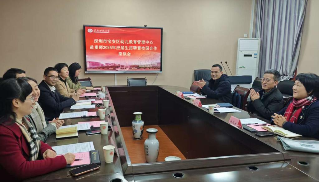 于砺志楼2434会议室,共同举行2026届毕业生招聘及校园合作座谈会。宝安区教育局四级调研员温福华、幼儿教育管理中心主任李新华一行,与耽美漫画