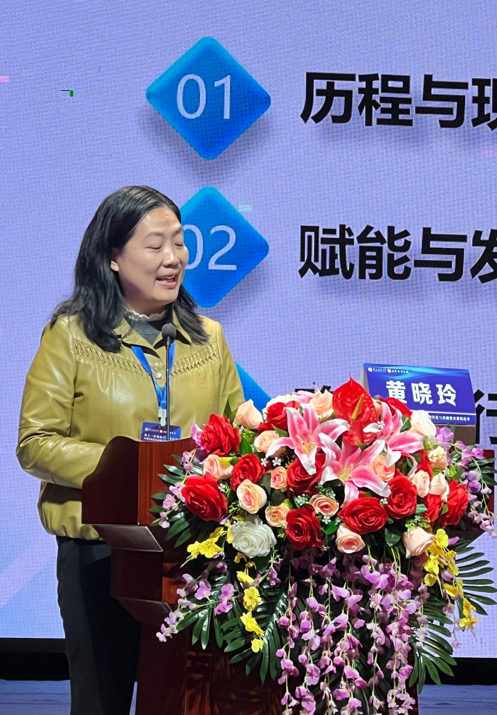 北京教育科学研究院课程教材发展研究中心研究员黄晓玲教授作了题为《普通高中校本课程发展的回顾、现状与展望——基于北京市发展实践的分析》的主题报告。