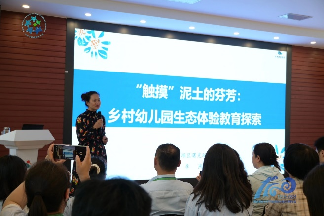 观摩过程中,李燕园长向与会人员详细阐述了该园发展历史以及国家教育政策对“乡村幼儿园生态体验教育”的影响,从环境建设、课程构建、课程实施、课程评价、保障支持五个方面,深入解读该园“生态体验”基本理念,详尽阐释“生态体验教育”实践探索过程。接着,李园长分享了曙光幼儿园生态体验教育多样化的推广方式,列举了多项显著的教育成果,并对生态教育未来发展趋势提出了独到的见解。