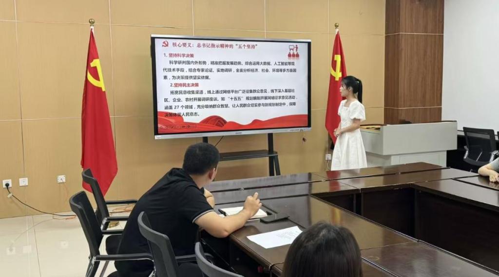 与会党员重点学习了习近平总书记强调的“五个坚持”指示精神,聚焦“十五五”规划开展专题学习,深入解读了规划的核心要义,认识到“十五五”时期作为迈向2035年基本实现社会主义现代化目标的关键过渡期,肩负着推动中国从中等收入国家向高收入国家跨越的历史重任。支部书记陈得文同志结合学习内容,对支部党员提出明确要求:要不断提升政治领悟力、实践落实力和创新思维能力,主动将个人发展融入国家战略大局,自觉对标规划目标,将宏伟蓝图转化为具体行动方案,在服务国家高质量发展中切实发挥党员的先锋模范作用。